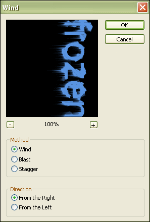 Press CTRL-F two times to repeat the wind effect and make it stronger.